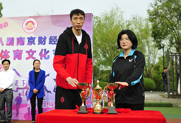 副校长邱伟芬、中国男子篮球队队员易立共同为“南财杯”揭幕 邱伟芬副校长为NCFC足球赛开球 第八...