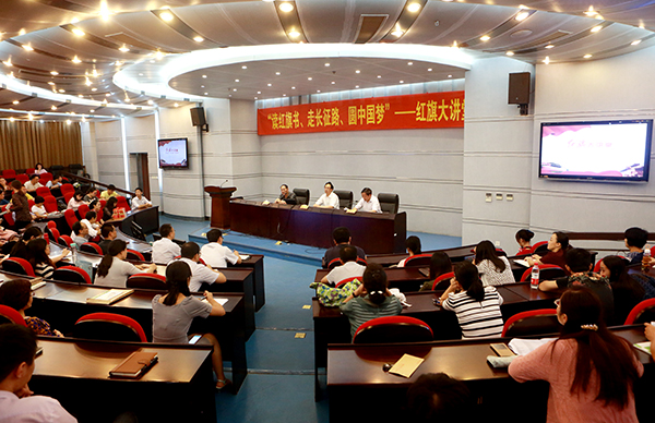 我校举办红旗大讲堂“读红旗书、走长征路、圆中国梦”专题读书报告会校党委常委、副校长鞠兴荣主持报告...