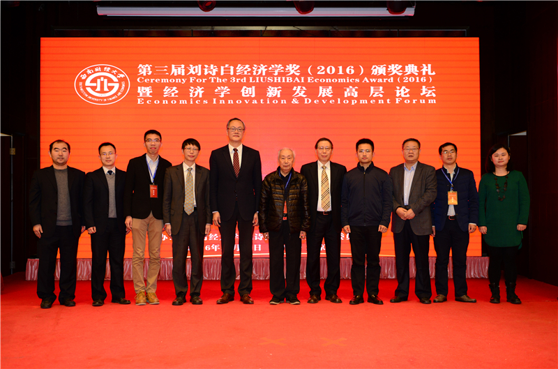 我校教师杨继军(右二)、周绍东(右四)荣获第三届刘诗白经济学奖 科研处供图12月10日,第三届刘诗...