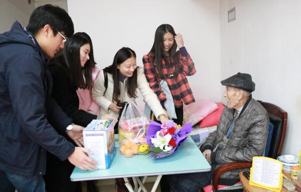 新闻学院组织学生探望96岁高龄的大屠杀幸存者夏瑞荣老人 新闻学院供图&nb...
