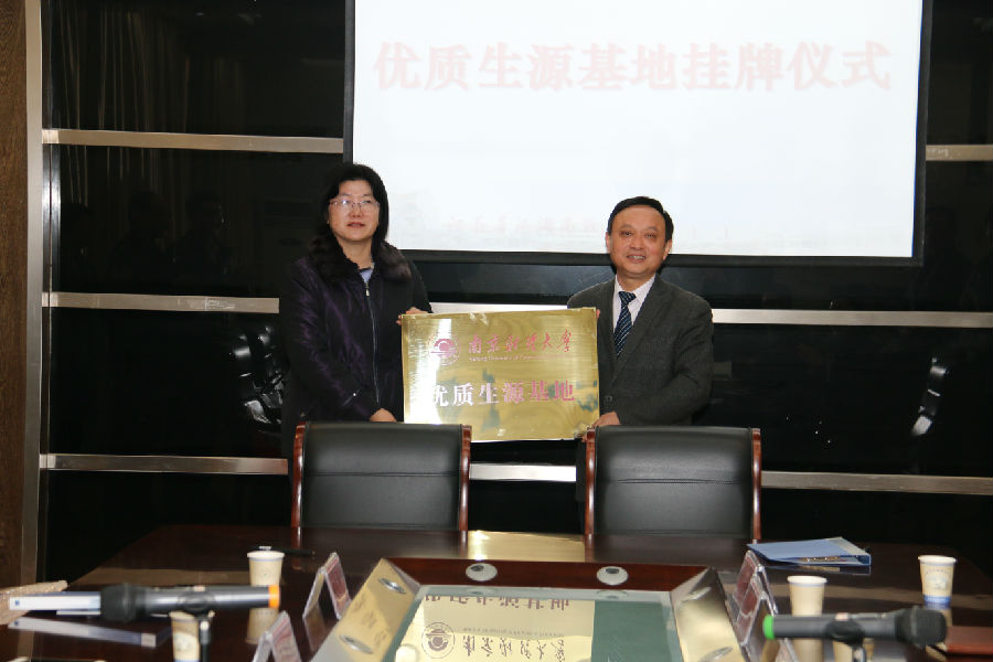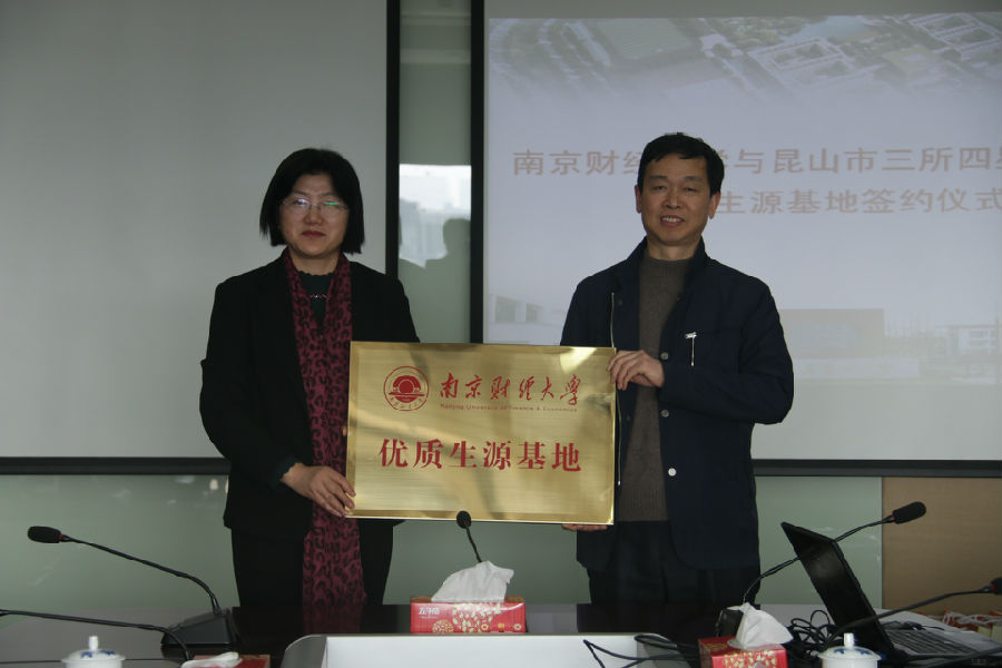 副校长邱伟芬授牌双方代表签订《南京财经大学优质生源基地合作协议书》 与会人员合影 &n...