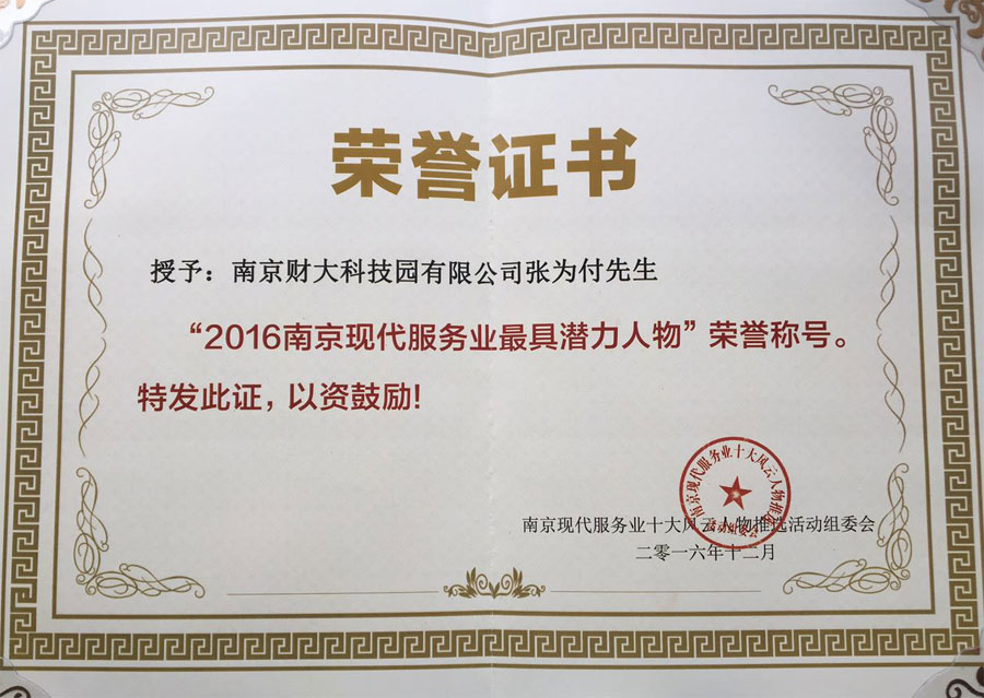 获奖证书 江苏现代服务业研究院供图12月20日上午,“首届南京现代服务业十大风云、新锐人物”...