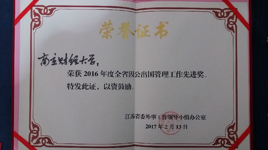 我校荣获2016年度全省因公出国管理工作先进奖