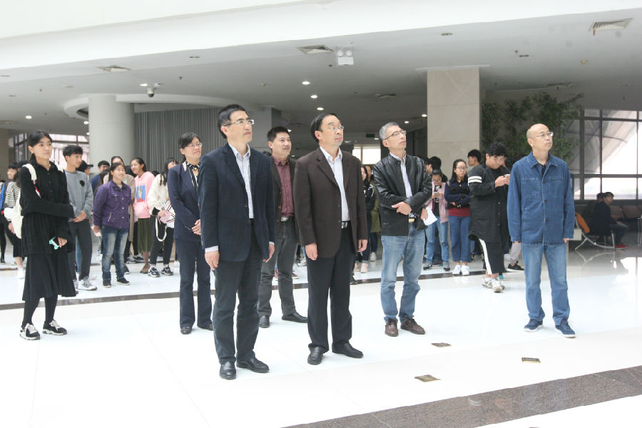 校党委副书记焦富民,中国文字博物馆党委副书记、副馆长李宽生等参观展览 学生体验甲骨文雕...