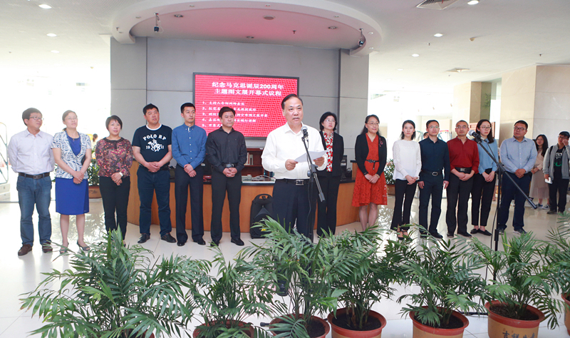 校党委书记陈章龙在开幕式上致辞副校长邱伟芬宣布图文展开幕与会领导、嘉宾集体观展 学生...