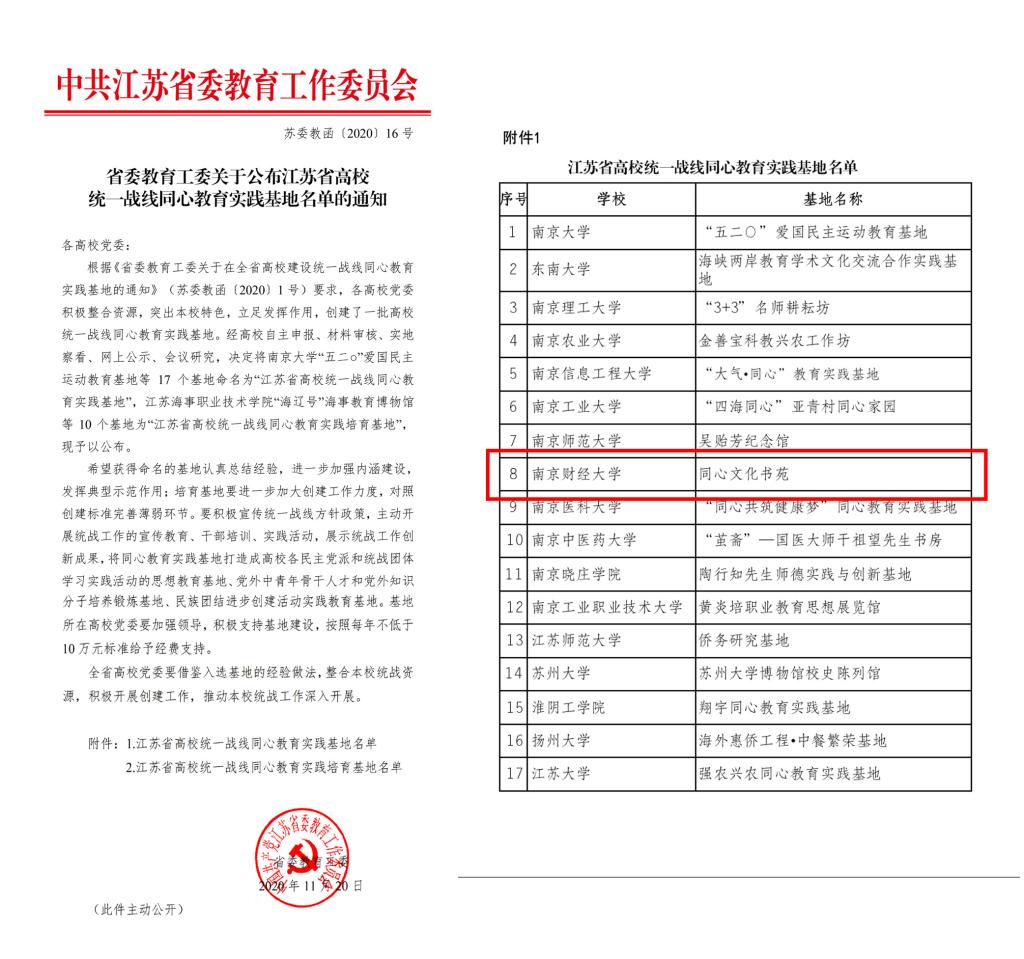 日前,江苏省委教育工委发布《关于公布江苏省高校统一战线同心教育实践基地名单的通知》,经自主申报、...