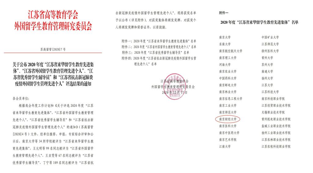 近日,江苏省高等教育学会外国留学生教育管理研究委员会公布2020年度“江苏省来华留学生教育先进集体”...