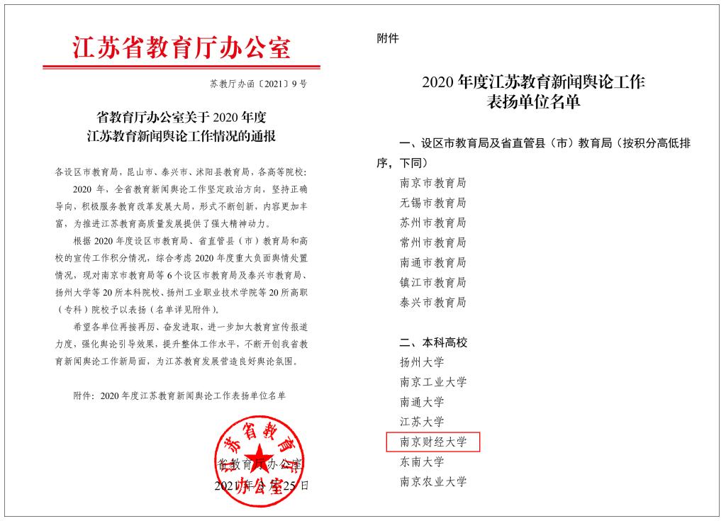 我校获评“2020年度江苏教育新闻舆论工作表扬单位”