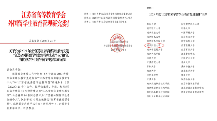 近日,2023年度“江苏省来华留学生教育先进集体”评选结果公布,我校成功获评。
