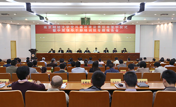 我校举办党风廉政建设责任书签字仪式暨中层领导干部培训班专题报告会 校党委书记陈章龙作...