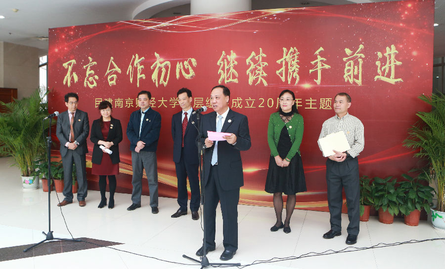 江苏省政协副主席、民建江苏省委主委洪慧民代表民建江苏省委向民建南财大基层委员会表示祝贺。洪慧民副主席充分肯定了民建南财大基层组织积极投身学校发展建设、履行参政党职能等方面的工作。接着,洪慧民副主席对民建南财大基层委员会今后的工作提出三点希望:一是始终不渝坚持中国共产党领导。自觉传承民建前辈先贤与中国共产党团结合作、共同奋斗的优良传统,自觉在思想上、政治上、行动上同以习近平同志为核心的中共中央保持高度一致;二是充分认识肩负的职责使命。发挥自身的特色和优势,围绕学校建设和社会经济发展工作大局,找准切入点、结合点、着力点,切实发挥参政党作用;三是坚持不懈加强自身建设。把着力点放在增强组织的凝聚力上,将创建学习型基层组织作为目标和抓手,增强政党意识、使命意识。最后,洪慧民副主席宣布民建南财大基层组织成立二十周年主题展开幕。