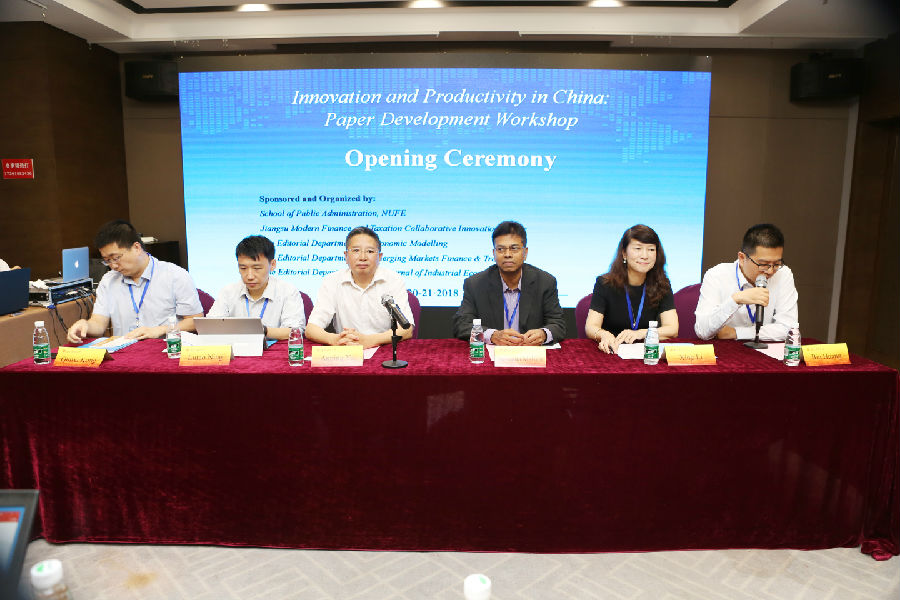 7月21日,由《Economic Modelling》和《Emerging Markets Finance and Trade》编辑部主办,南京财经大学公共管理学院、江苏现代财税治理协同创新中心及《产业经济研究》编辑部共同承办的“中国创新与生产力国际学术论文研讨会”在我校召开。我校副校长俞安平教授,《Economic Modelling》主编Sushanta Malick教授、副主编Lutao Ning教授出席开幕式,我校科研处处长李杏教授、《产业经济研究》编辑部主任孔群喜教授,《Emerging Markets Finance and Trade》期刊三位客座编辑,来自伦敦玛丽王后大学、英国国家经济与社会科学研究院、香港中文大学、北京大学、浙江大学、中国人民大学、南京大学、中山大学、中央财经大学、上海财经大学等近30所高校的专家学者,以及我校部分教师、研究生参加研讨会。