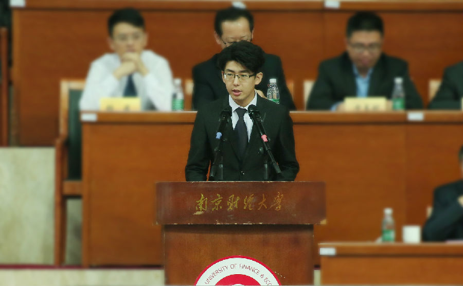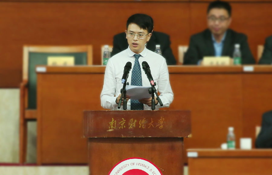 在校生代表、金融1502班王谱智发言
