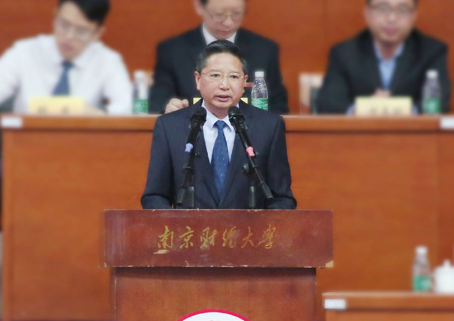 毕业典礼上,宋学锋校长代表学校对全体2018届毕业生表示最诚挚的祝福和最美好的祝愿!向所有为同学们的成长成才倾注心血和汗水的老师和家长们致以崇高的敬意和衷心的感谢!他说,几年前,青涩懵懂的学子们来到南财,开启了人生最重要最美好的大学生涯。在校期间,南财学子秉承“自谦 自信 务实 超越”的校训精神,用实际行动展示着自己的风采。宋学锋校长与毕业生们分享了两个“关键词”:第一个关键词是“实践”。作为青年一代,一是要善于实践,要通过不断磨砺,将所学知识转化为个人本领,实现知行合一、以知促行、以行求知;二是要勇于实践,要谨防生活舒适引发的思想懈怠,要勇敢走出思想上的舒适区,勤于思、敏于行。第二个关键词是“担当”。作为时代新人,需要有三个方面的担当,一是对于家庭的担当,我们对于父母的哺育要心存感恩;二是对于职业的担当,对于职业,我们要心存珍惜,永葆奉献热情;三是对于国家和民族的担当,要始终保有胸怀天下的格局,将母校“粮食”特色与“财经”底色融入到祖国发展和建设事业中。最后,宋学锋校长寄语同学们:你们走到哪里,母校的牵挂就跟随到哪里;你们走到哪里,母校的影响就扩展到哪里。愿你们有国有家有担当,有梦有爱有远方。祝愿同学们此去前程似锦,归来仍是少年。真诚地欢迎同学们以后常回母校看看!