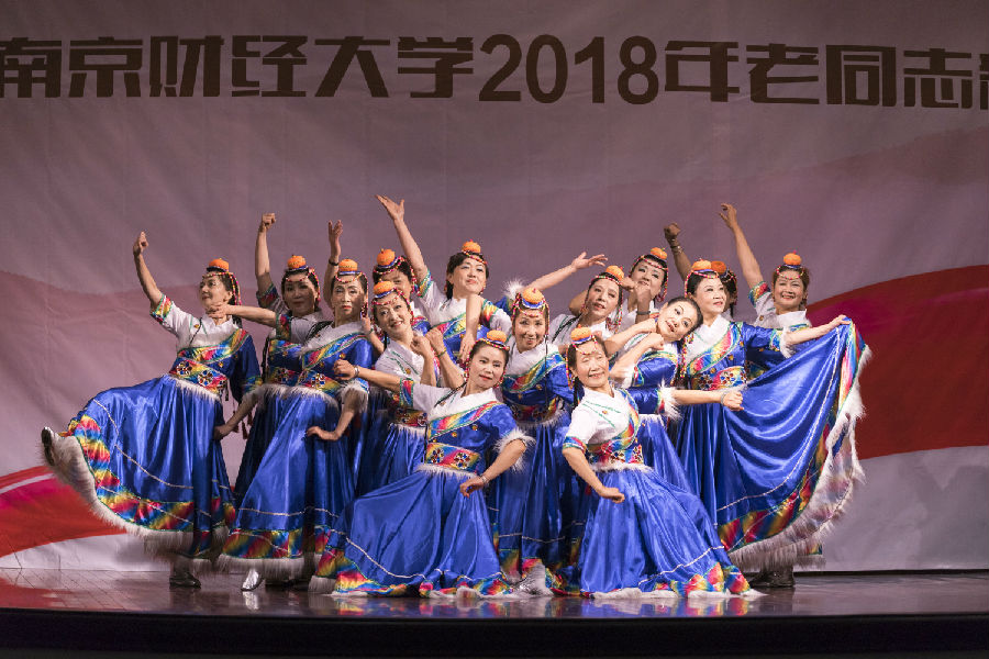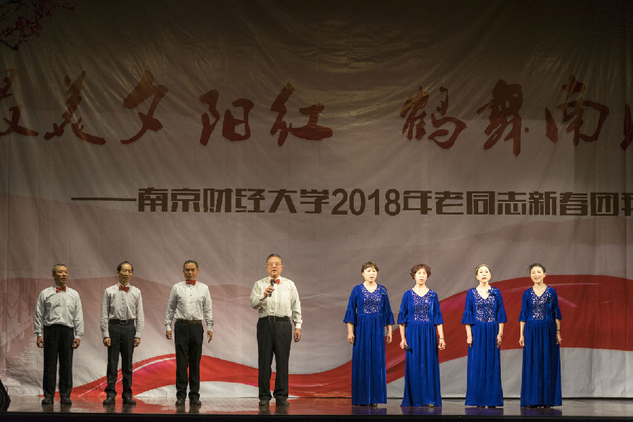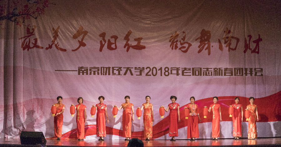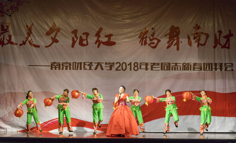 之后,校领导与老同志们一同观看了我校夕阳红艺术团带来的“最美夕阳红•鹤舞南财”文艺演出。开场歌舞《好日子》亮丽婉转、节奏明快;舞蹈《卓玛》《唐古拉风》快意洒脱,极具民族特色;校教职工舞蹈队《梦忆江南》展示了江南水乡的文化古韵、令人迷醉;舞蹈《亲爱的我爱你》《中华通络操》尽展老同志们昂扬向上的生活态度。最后,在全场齐唱《歌唱祖国》的嘹亮歌声中,团拜会圆满落下帷幕。