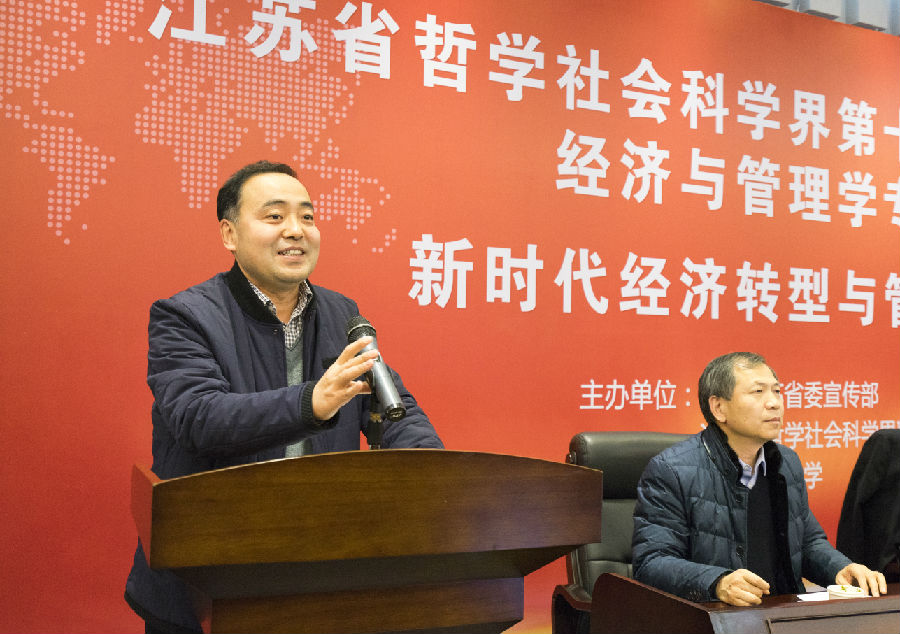 刘德海书记致辞。他指出,当前我国经济已由高速增长阶段转向高质量发展阶段,正处在转变发展方式、优化经济结构、转换增长动力、建设现代化信息体系的攻关期。要实现“两个一百年”奋斗目标需要坚实的经济基础作为物质支撑,要贯彻落实新的经济发展理念,坚持质量第一、效益优先,推动经济持续健康发展。他表示,本次大会的主题是“新时代经济转型与管理创新”,将从多学科、多领域围绕供给侧结构性改革、管理创新、科技创新、金融创新、体制机制创新等方面进行交流探讨,为推动江苏省乃至国家经济创新发展、增强活力和竞争力建言献策。