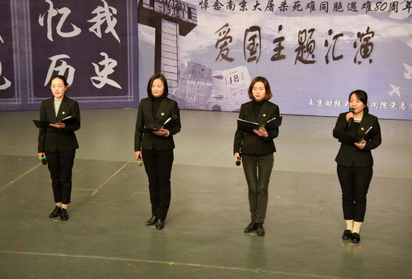 12月11日下午,由新闻学院党总支主办的“悼念南京大屠杀死难同胞遇难80周年”爱国主题汇演在仙林校区校园电视台演播厅举行。校党委副书记焦富民、副校长邱伟芬出席活动,并与相关部门负责人、新闻学院师生共同观看了演出。