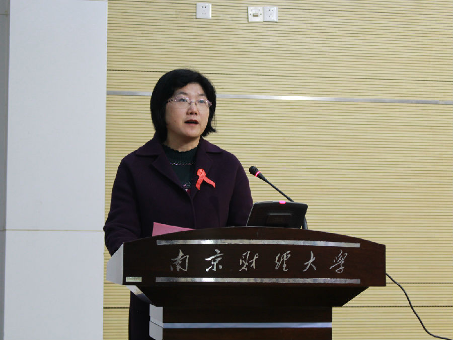 11月29日中午,由校团委、校医院主办,校青年志愿者协会承办的南京财经大学2017年防治艾滋病宣传周开幕式在仙林校区图书馆一楼报告厅举行。副校长邱伟芬出席开幕式,学生处、保卫处、校团委、校医院等单位负责人,我校各校级学生组织以及各学院学生代表参加开幕式。