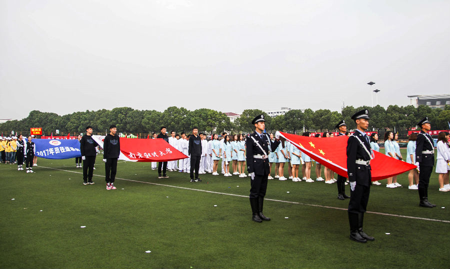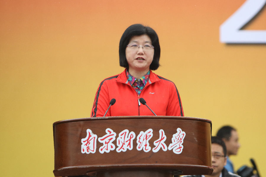 副校长邱伟芬致开幕词。她强调,本次运动会在党的十九大召开之际举行,是我校贯彻“全面育人”教育思想的重要载体。她指出,开展丰富多彩的校园体育活动,有利于促进我校师生“育体”和“育人”的有机结合。过去的一年,我校体育工作取得了新的进展,群众性体育运动蓬勃开展,竞技体育成绩优异,体育教学改革不断推进,“强健体魄、健康生活”正成为校园文化的重要内涵。她激励同学们“走下网络、走出宿舍、走向操场”,积极进行体育锻炼。她希望全体运动员弘扬奥林匹克精神,超越自我、顽强拼搏,赛出成绩、赛出风格;全体裁判员树立“安全第一,热情服务,严守规则”的意识,确保各项比赛公平公正;各岗位人员恪尽职守,确保比赛顺利进行。最后,邱伟芬副校长预祝本次运动会取得圆满成功。