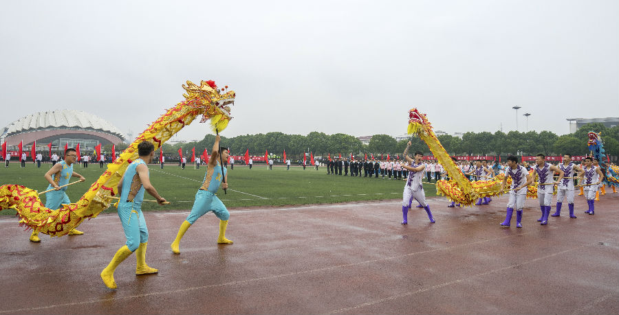 运动员精神抖擞地走过主席台接受检阅 校摄协 黄莹/摄