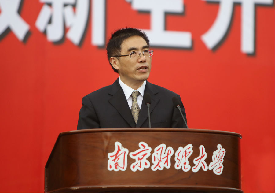 副校长王开田宣读《关于颁发南京财经大学2017年优秀新生奖学金的决定》