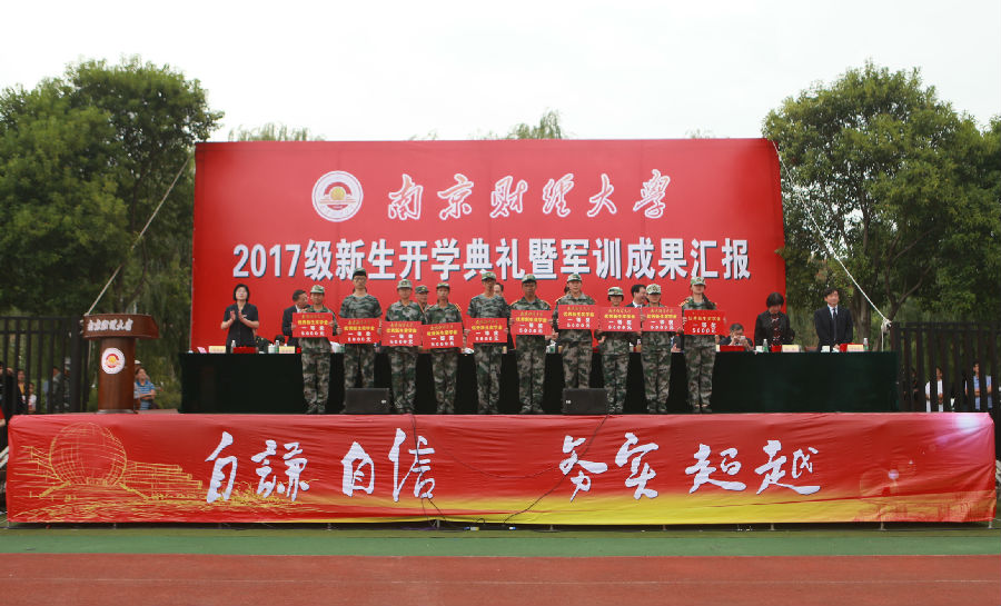 副校长王开田宣读了《关于颁发南京财经大学2017年优秀新生奖学金的决定》。其中,张伊敏等23名优秀新生获得“新生优秀奖学金一等奖”(各5000元),许依升等43名优秀新生获得“新生优秀奖学金二等奖”(各2000元),相关校领导为获奖的优秀新生颁奖。