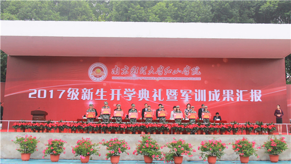 在慷慨激昂的《南财大之歌》中,红山学院2017级新生开学典礼暨军训成果汇报圆满结束。