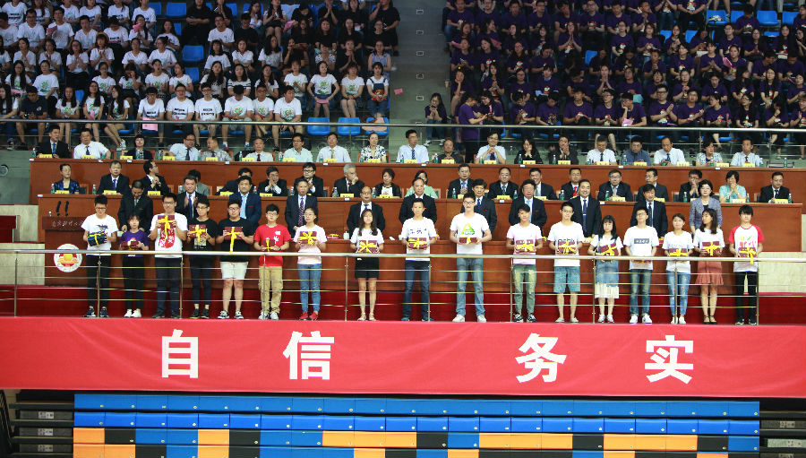 6月19日上午,我校2017届毕业生毕业典礼在仙林校区体育馆隆重举行。全体在校校领导、相关职能部门负责人、各学院党政负责人、教师代表及全体2017届毕业生欢聚一堂,共同庆祝这一美好时刻。校党委书记陈章龙、校长宋学锋出席毕业典礼。校党委副书记焦富民主持毕业典礼。