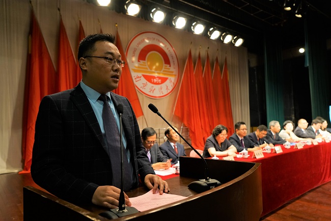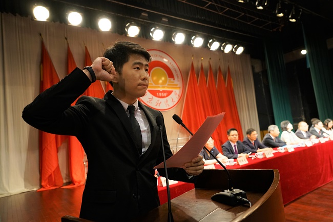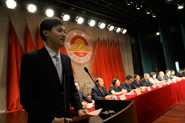 会计1354班纪子瞻同学作为毕业生代表发言并宣誓