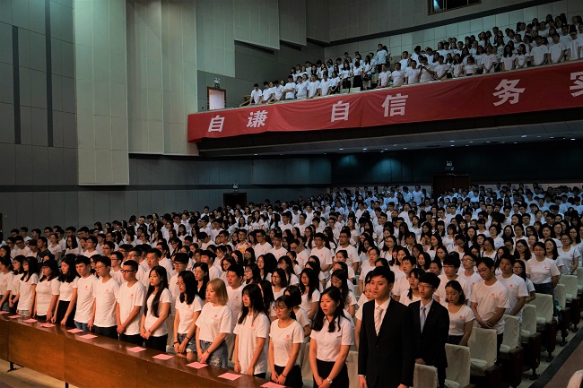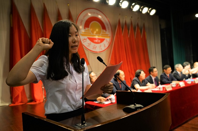 金融1354班唐子绚同学作为毕业生代表发言并宣誓