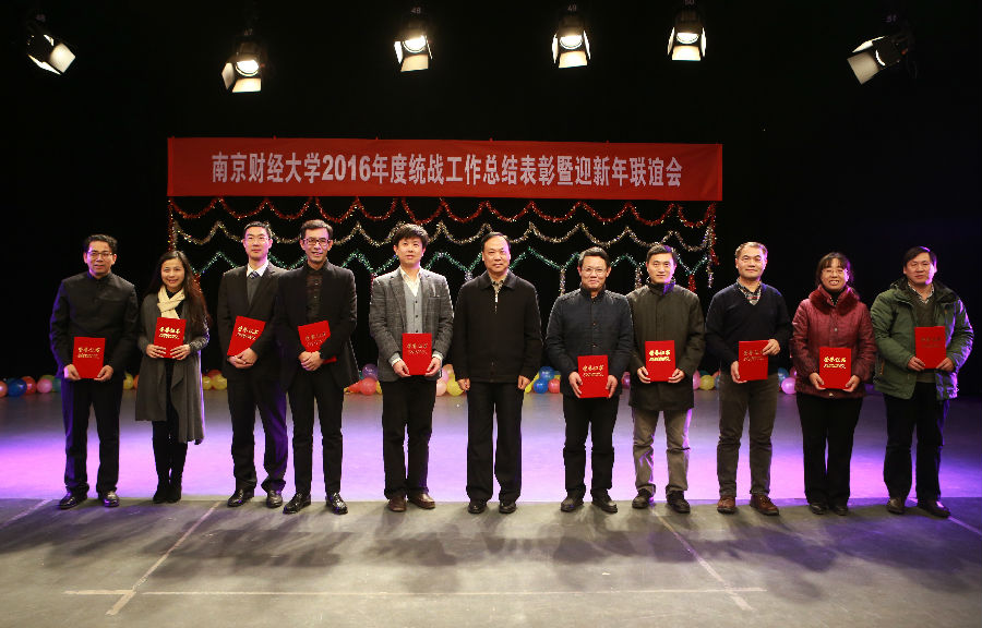 12月28日下午,我校2016年度统战工作总结表彰暨迎新年联谊会在仙林校区校园电视台演播厅召开。校党委书记陈章龙出席会议,党委常委、组织部部长朱琴华,党校办主任赵国栋,各学院党委(党总支)书记,党委统战部全体工作人员与我校党外人士欢聚一堂,共话发展,喜迎新年。会议由党委统战部部长韩力争主持。