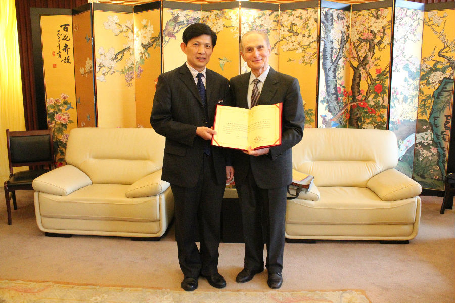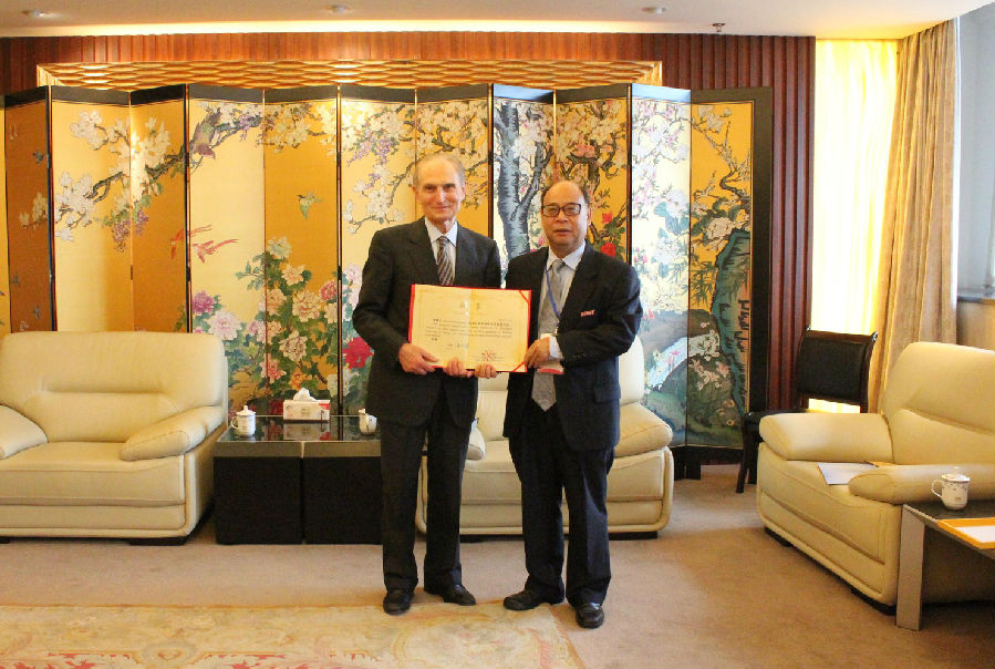 宋学锋校长向萨尔瓦多教授颁发“南京财经大学荣誉教授”证书