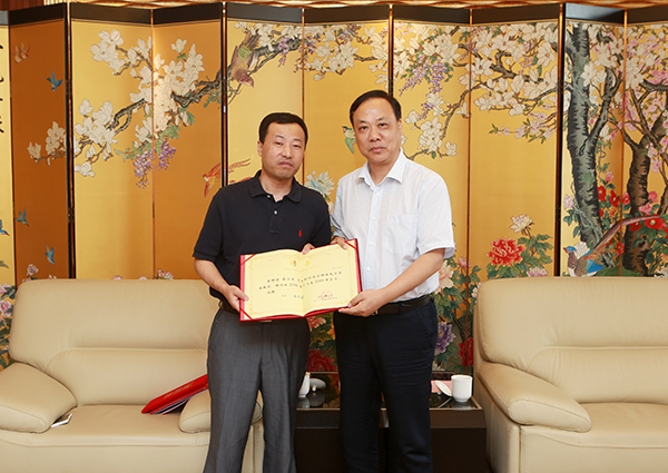 陈章龙书记向蔡卫东校友颁发证书