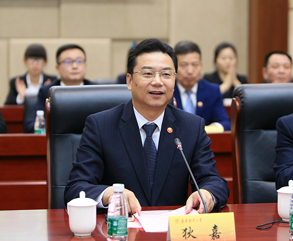 狄嘉董事长致辞。他说,钟山宾馆集团秉承“尊重知识、重视人才、鼓励创新”的人才发展理念,为人才提供施展才华的空间和创新创业的舞台。此次合作会为双方带来更广阔的发展前景,希望南京财经大学为钟山宾馆集团输送更多的优秀人才,双方在校企合作平台上携手向前,共谋发展。