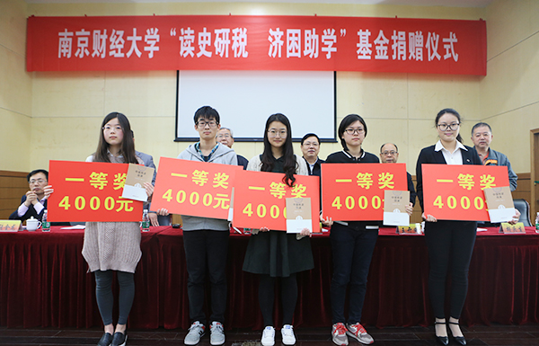 “读史研税济困助学基金”由江苏省国家税务局党组原副书记、副局长,江苏省税务学会常务副会长张敬群先生捐资设立,资金来源为张敬群先生所著《中国税史品读》的全部28万元稿酬。