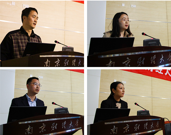 信息工程学院党委书记韩忠愿、财政与税务学院党委副书记陈苏、会计学院辅导员董明文、艺术设计学院党委书记段伟伟分别就各自学院及个人在创业就业工作的具体做法进行了经验交流。