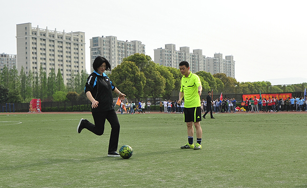 最后,邱伟芬副校长宣布我校第八届体育文化节开幕,与易立共同为“南财杯”揭幕,并为NCFC足球赛开球。