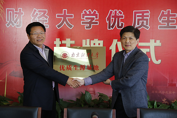3月28日下午,校长宋学锋、副校长邱伟芬一行赴南京市第二十九中学出席南京财经大学优质生源基地签约授牌仪式。二十九中校长唐云龙、党委书记徒香福等全体校领导,中层以上干部,以及高一、高二年级班主任参加仪式。我校学生处处长姚学峰、招生办主任衣琳随同参加活动。