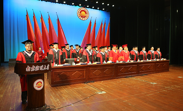 3月23日上午,我校2016届硕士研究生毕业典礼暨学位授予仪式在仙林校区大礼堂隆重举行。校领导陈章龙、宋学锋、王开田、俞安平、乔均、黄建元、华仁海出席毕业典礼暨学位授予仪式。学生处、研究生处、教务处、科研处、相关学院负责人参加典礼并在主席台就座,毕业研究生导师、学院领导和老师与2016届全体毕业研究生欢聚一堂,共同见证这一激动的时刻,分享收获的成功和喜悦。毕业典礼暨学位授予仪式由副校长华仁海主持。