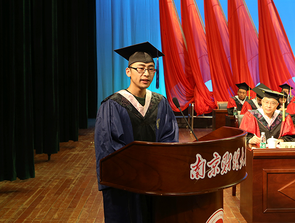 毕业研究生代表、保险专业2013级研究生虞鹏飞同学发言 党委宣传部供图