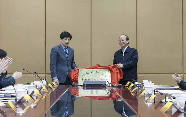 校长宋学锋与江苏省地方税务局局长江建平共同为“中国财税治理研究院”揭牌 校摄协 孙可/摄
