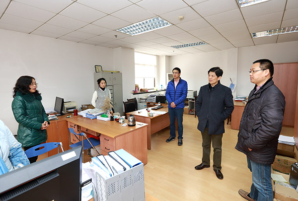 走访中,陈章龙书记、宋学锋校长与一线工作人员亲切问好、握手交谈,询问大家上班第一天的情况,了解大家的假期生活,勉励大家要振奋精神、开拓进取,以崭新的精神面貌迎接新学期的工作,并要求各学院、各部门要加强管理,科学统筹,围绕学校中心工作,着手落实今年的工作计划,确保“十三五”事业发展开好局、起好步,以优异的成绩迎接建校60周年。