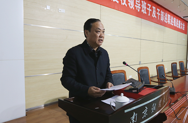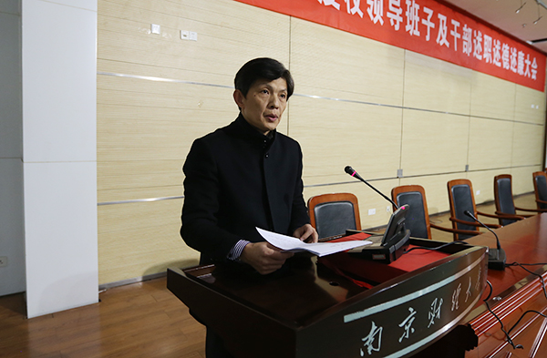 根据省委组织部《关于做好2015年度高等学校、科研院所及其他事业单位省管干部考核工作的通知》精神,1月18日下午,我校在仙林校区图书馆一楼报告厅召开2015年度校领导班子及领导干部述职述德述廉大会。全体校领导,校级老同志,党委委员,中层干部,学术委员会委员,省级以上人大代表、政协委员,各民主党派负责人参加了会议。会议由校长、党委副书记宋学锋主持。