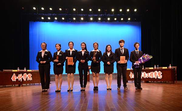 最后,经过评委的投票,食品科学与工程学院获得冠军,会计学院获得亚军;食品科学与工程学院的周军获得“最佳风度奖”,会计学院的陈晶梦同学获得“最佳辩手奖”。相关领导为获奖选手及队伍颁奖。
