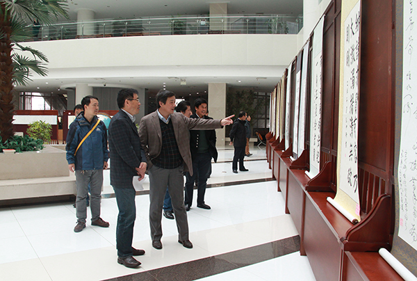 11月11日上午,由纪委办公室、党委宣传部、校团委、图书馆、艺术设计学院共同举办的“兰台新韵”文化艺术节之“遵法•崇廉•明德”——2015校园廉政文化书画摄影作品展在仙林校区图书馆开幕。校党委副书记、纪委书记焦富民出席开幕式,相关职能部门负责人以及爱好书画摄影的老师和同学参加了开幕式。开幕式由纪委副书记、纪委办公室主任王海林主持。