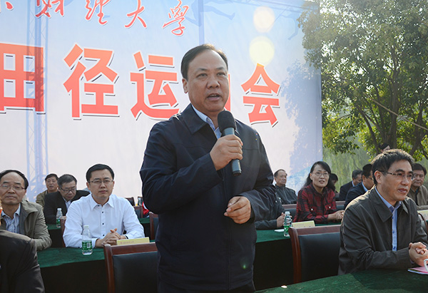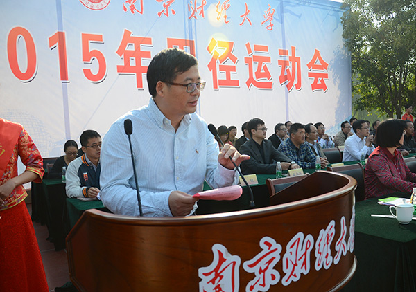 校党委书记陈章龙宣布我校2015年田径运动会开幕