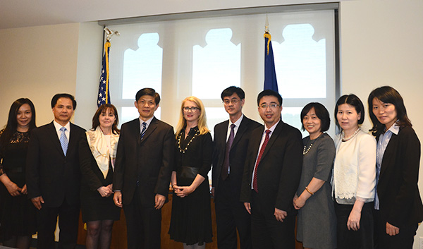 5月21日,代表团访问了位于纽约州奥尔巴尼市的美国纽约州立大学总校,宋学锋校长一行与纽约州立大学三位副总校长Sally Crimmins Villela女士、Paul Marthers先生、Jennifer LoTurco女士进行了友好会谈并召开了孔子学院理事会。会谈中,双方就商务孔子学院续约事宜进行了有效磋商,对原有协定作了修订,均表示将按期续约,并确定了新一届理事会成员名单。此外,双方还就未来在学生交流项目、教师访学及科研项目、师生在线互动式教学及学习项目(SUNY Coil Center)等领域的合作进行洽谈。商务孔子学院中方院长孙冬、美方院长Maryalice Mazzara 女士作工作情况汇报。宋学锋校长对我校商务孔子学院团队的工作成绩予以充分肯定,并给予了建设性指导。