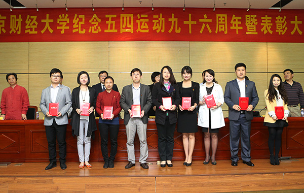 4月29日下午,我校在仙林校区图书馆报告厅隆重举行纪念五四运动九十六周年暨表彰大会,表彰2014年度在团学工作中表现突出的先进集体和个人。校党委常委、副校长邱伟芬出席会议并讲话。党校办、党委组织部、党委宣传部、党委学生工作部、党委保卫部、团委、教务处、科研处负责人,各学院党委(总支)书记、副书记,各学院团委书记、副书记、专职团干,校学生会主席团成员,各学院学生会主席,团员代表,获奖人员代表参加了大会。大会由校团委副书记王孝晨主持。