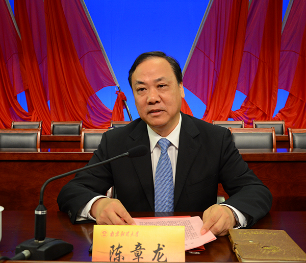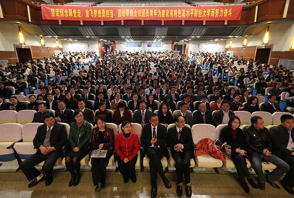 校党委书记陈章龙讲话。他指出,长期以来,我校共青团在团省委和学校党委的正确领导下,紧扣时代主题,围绕学校改革发展大局,着眼学生全面发展需求,团结带领全校广大团员青年,在思想教育、校园文化、创新创业、社会实践、志愿服务和自身建设等方面取得了可喜的成绩,在服务学校中心工作、促进学生成长成才,维护校园和谐稳定等方面做出了重要贡献。陈章龙书记代表学校党委提出四点希望:第一,希望全校团员青年坚定理想信念,勇担青春使命,争当奋发有为的时代先锋;第二,希望全校各级团组织坚持立德树人,锐意开拓创新,开创共青团工作新局面;第三,希望全校各级团干部明确职责使命,提升素质本领,服务青年学生成长成才;第四,希望全校各级党组织支持团的事业,关心青年成长,切实加强党建带团建工作。陈章龙书记希望全校广大团员青年、广大团干部、各级团组织以本次大会的召开为契机,继承和发扬我校共青团工作的优良传统,开拓创新、锐意进取,为实现学校建设有特色、高水平财经大学的奋斗目标,为实现国家富强、民族振兴、人民幸福的伟大“中国梦”奉献青春、智慧和力量。