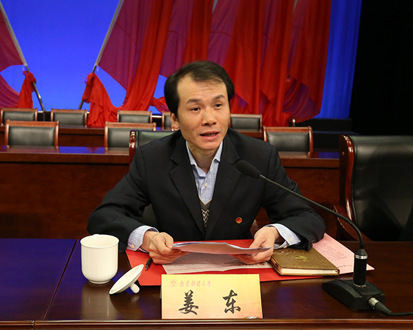 共青团江苏省委党组成员、省少先队总辅导员姜东代表共青团江苏省委向大会的召开表示热烈的祝贺,向参加大会的全体代表并通过他们向全校团员青年和同学致以诚挚的问候,向长期以来重视、关心、支持共青团工作的学校领导、各职能部门和全体教职员工表示崇高的敬意和衷心的感谢。他肯定了我校共青团的重要地位和作用,并提出四点希望:一是强化思想引领职能,坚定青年理想信念;二是围绕党政中心工作,构建实践育人体系;三是坚持党建带团建,加强团的基层组织建设;四是增强服务青年本领,提升团干部素质。